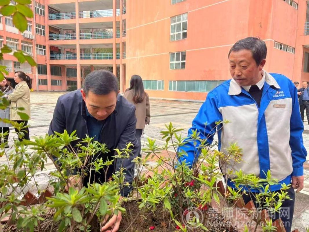 上午9时,参与活动的教职工准时集合,领取铁锹、水桶、手套等工具。在后勤处能源绿化科专业人员的指导下,大家分工协作,扶正树苗,挥锹铲土、扶苗填坑、浇水培土,配合默契,热情高涨,现场一派繁忙景象,处处洋溢着干事植绿的火热氛围。经过大家的共同努力,50余杜鹃花树苗在校园“安家落户”,为春日校园增添了一抹盎然生机。